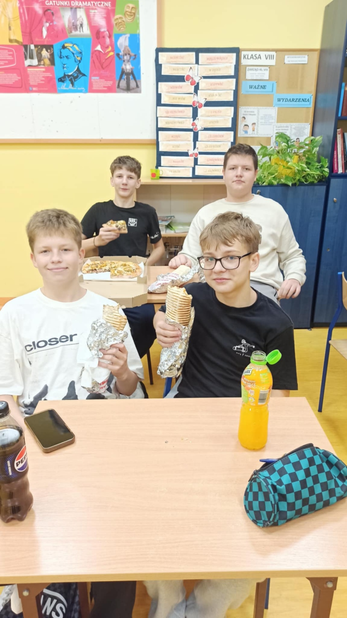Dnia 6 października (z lekkim opóźnieniem) uczniowie klasy VIII obchodzili Dzień Chłopaka. Z tej okazji było wspólne świętowanie w szkole. Była pizza i kebaby, które wszyscy zjedli ze smakiem. Po posiłku odbyła się projekcja filmu pt. „O psie, który wrócił do domu”. Film wszystkim bardzo się podobał – był wzruszający i pełen pozytywnych emocji.